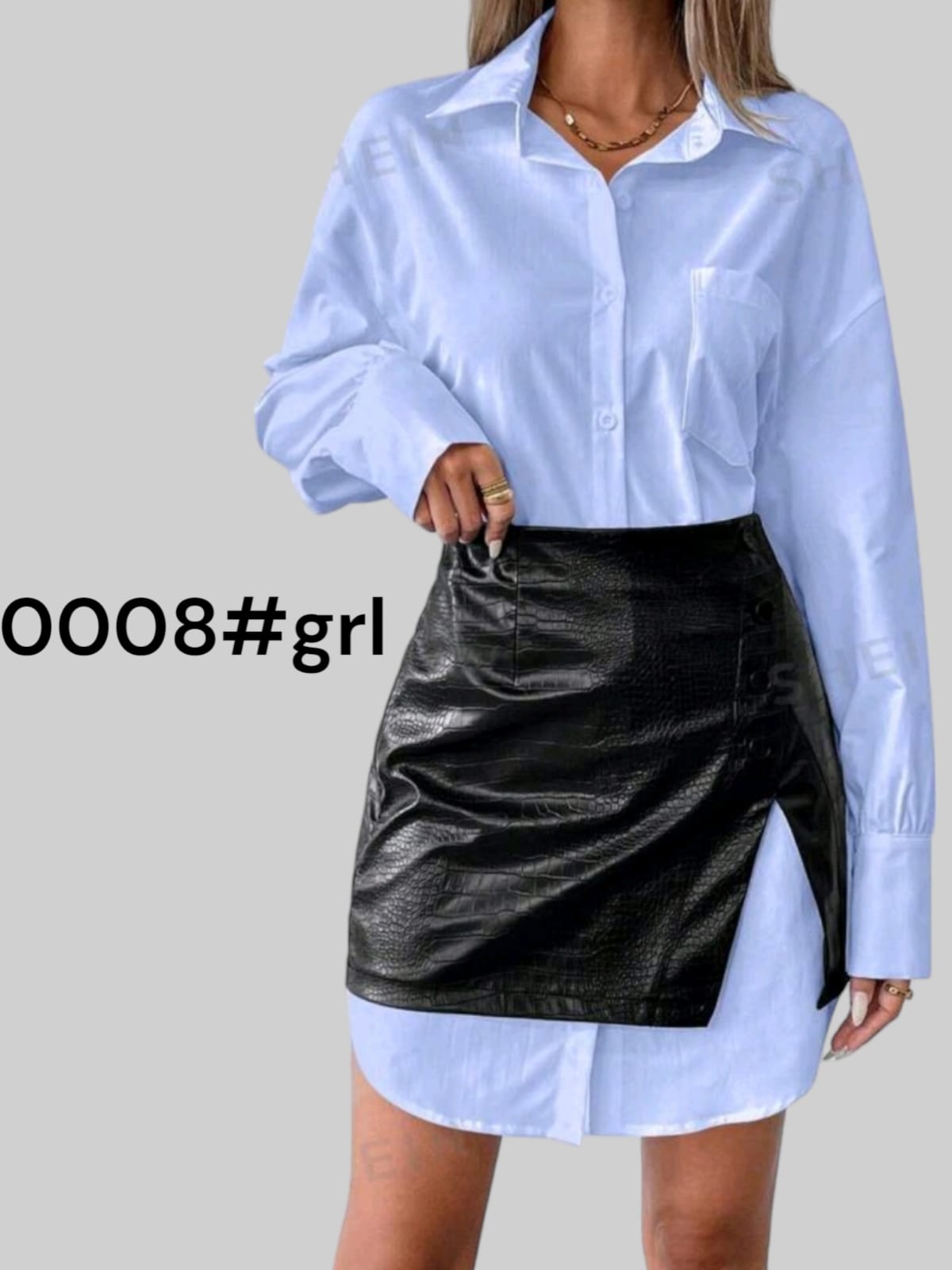 ensemble de chemise oversize un peu longue + une jupe en cuire pour des petites fêtes