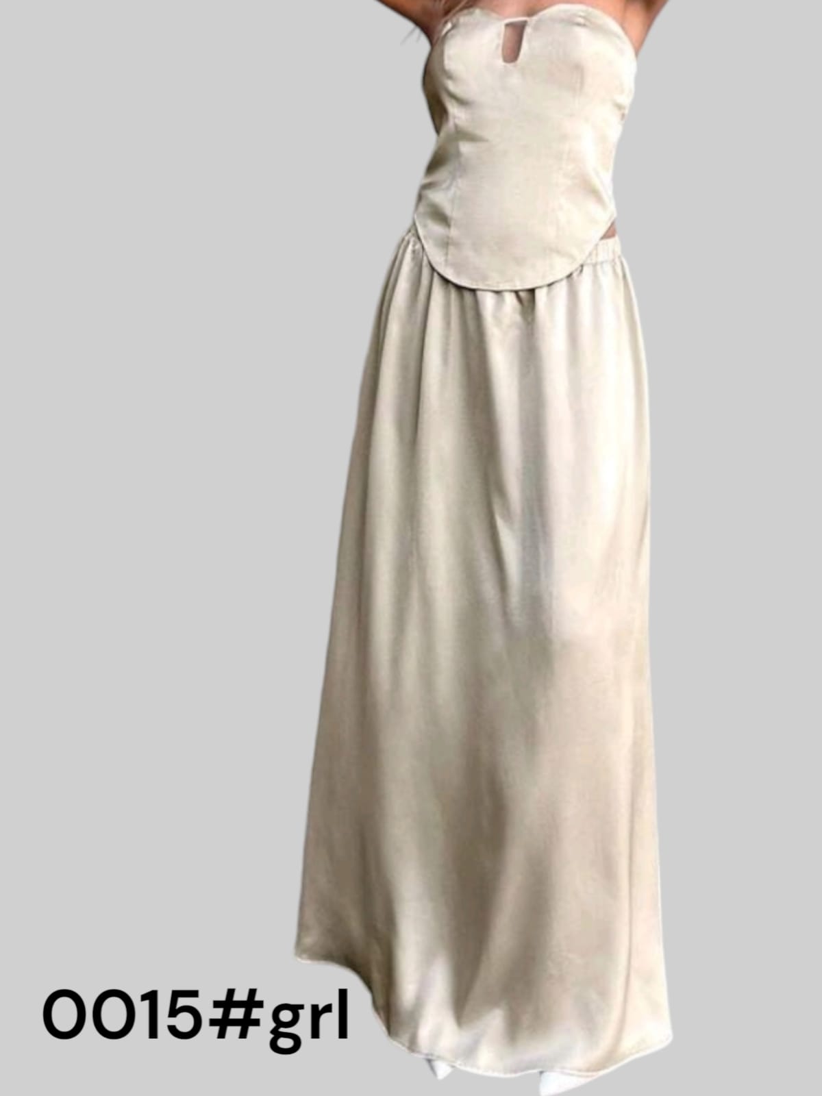 Ensemble de jupe trapèze et haut sans brodelle en métal kaki pour femme, nouvelle collection de 2025