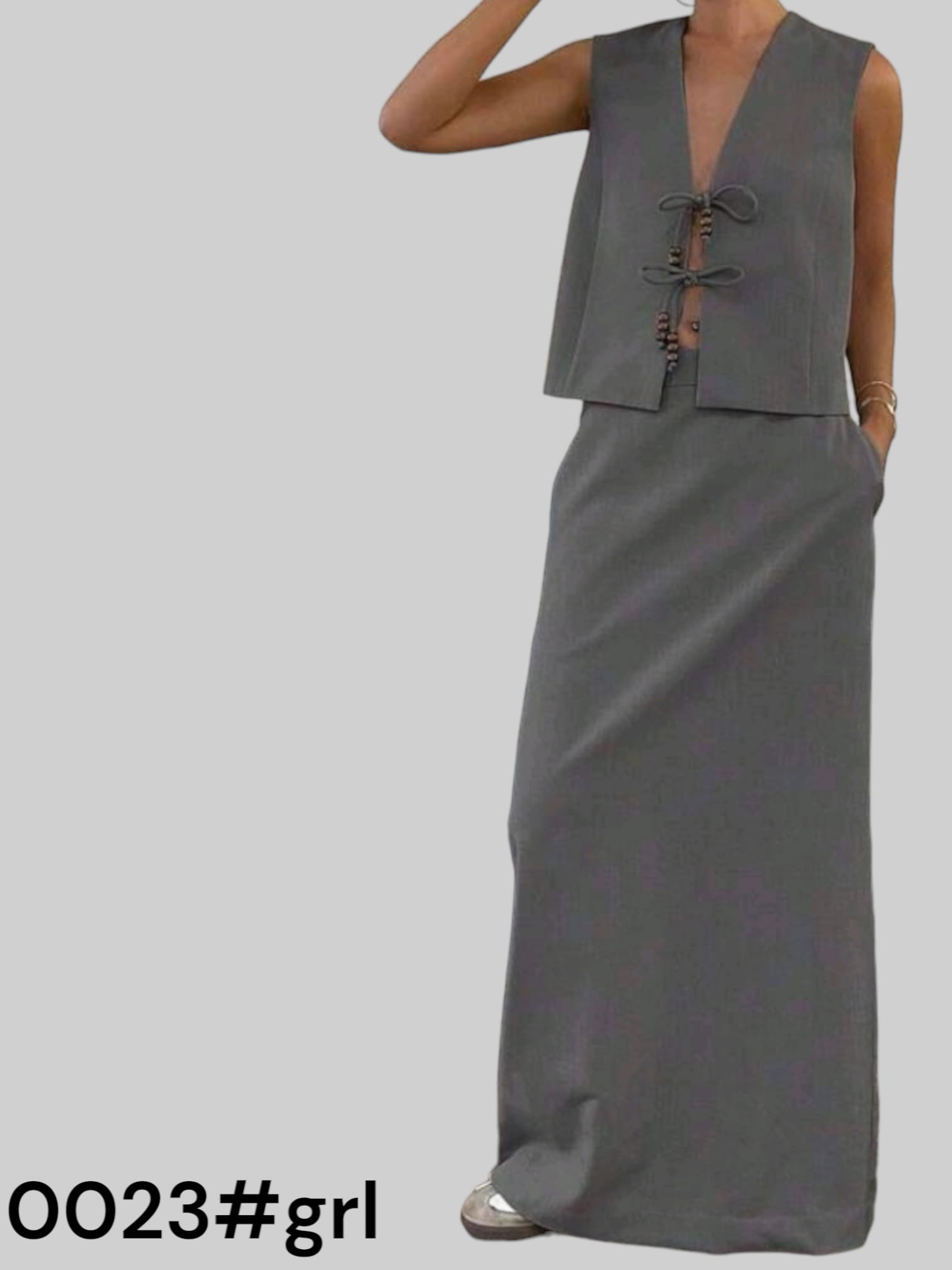 Ensemble deux pièces pour femme un gilet unicolore et une jupe à lien de conception longue