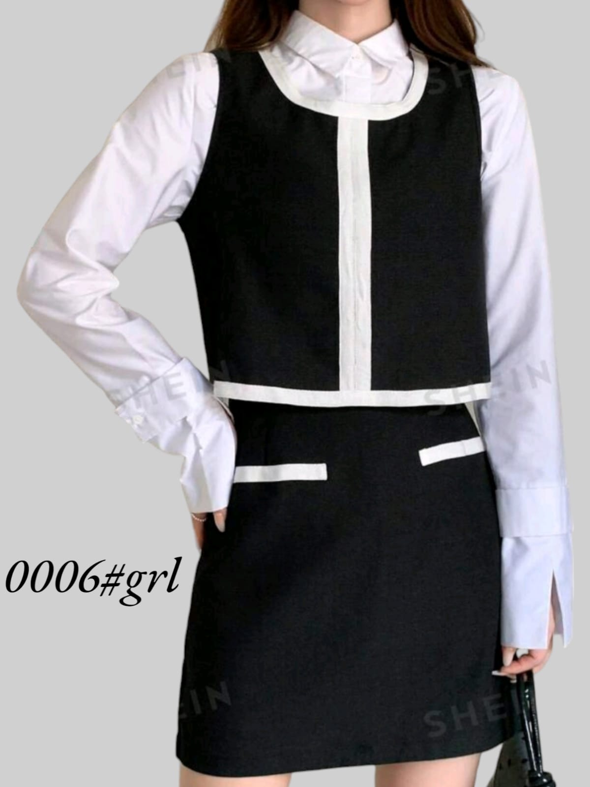 Contenu :2 ensemble (débardeur veste et jupe mini) sans la chemise blanche