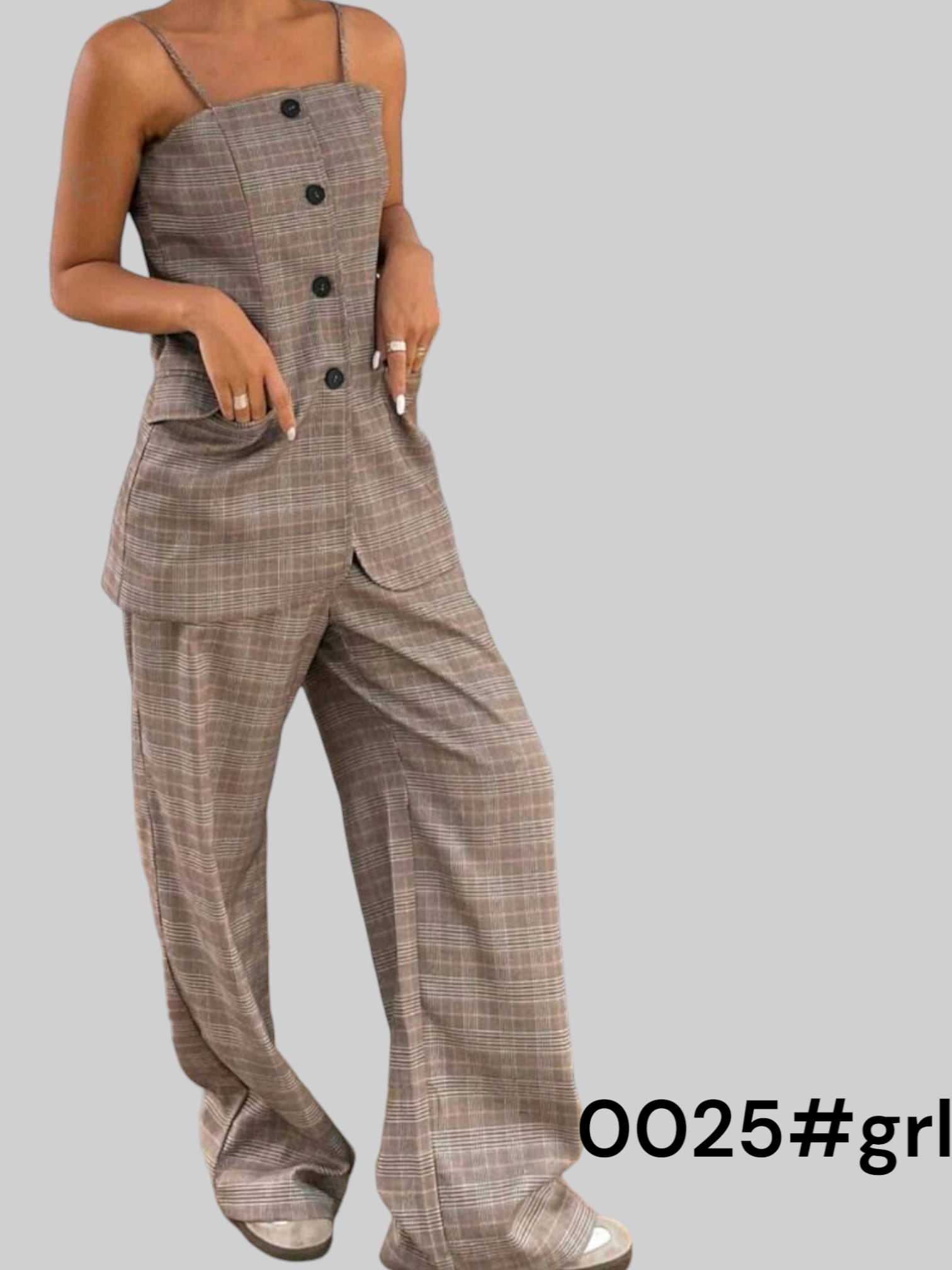 ensemble de 2 pièces Pantalons Barrel à Carreaux et haut manche 7/8