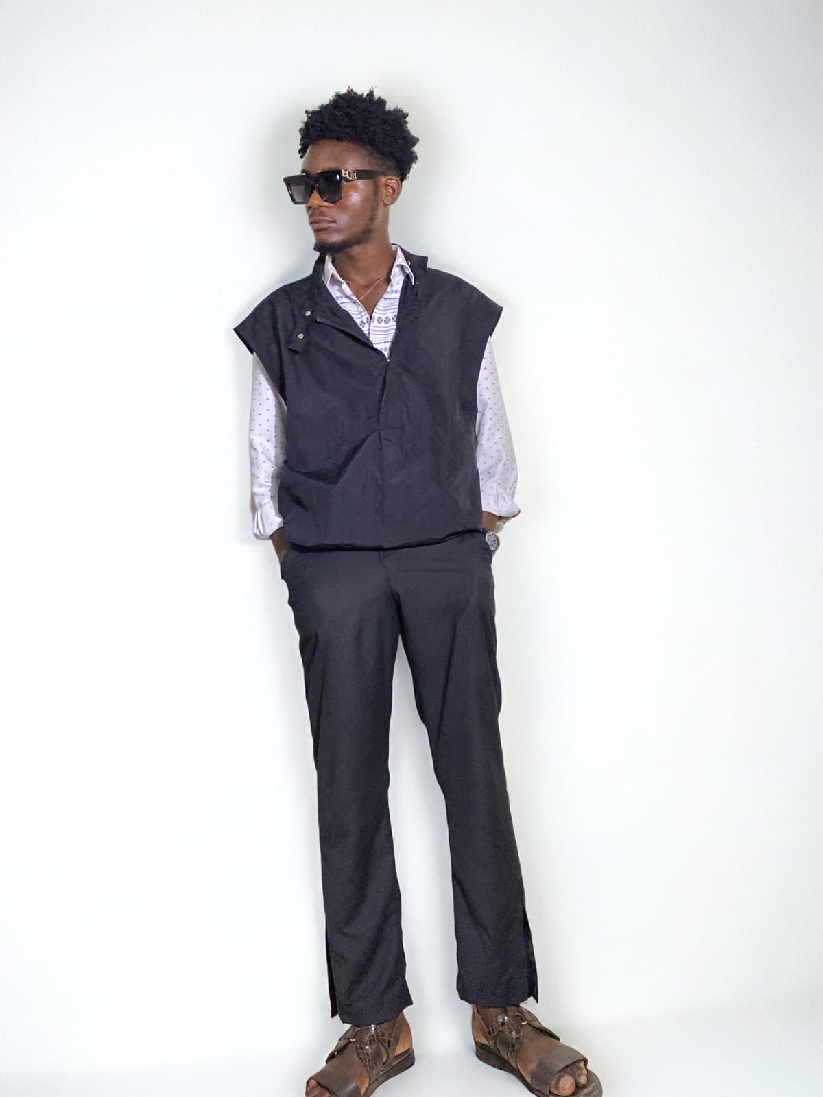 ensemble de 2 pièces Pull-over sans manches Regular à col et un pantalon droit non overseize